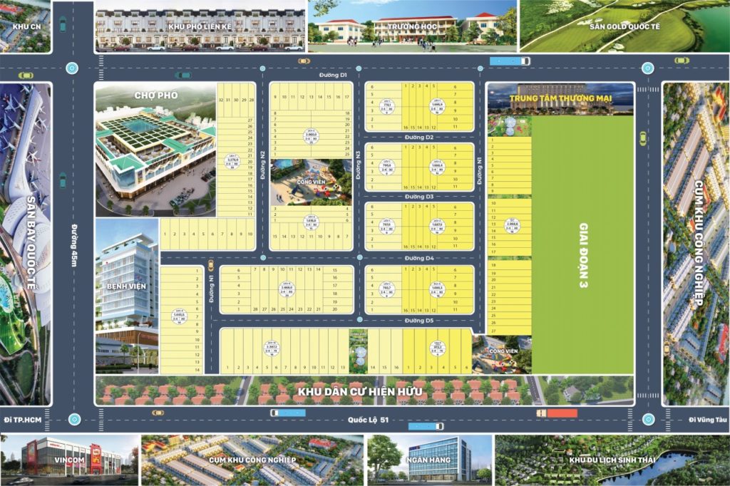 場所は、Long Thanh国際空港建設予定地の南東、約10㎞ほど行ったところ、Ho Chi Minh – Long Thanh – Dau Giay高速道路と国道51号線の交わる地点から直線で16㎞ほどのところです。