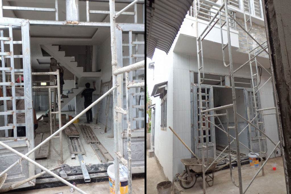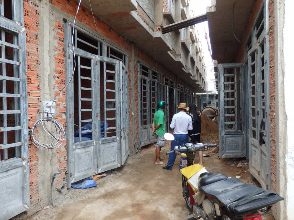 国道1号線からĐinh Đức Thiện通りを曲がり約3㎞の地点で、ちょうどホーチミン市とロンアン省の境界近くになります。家の場所はこのĐinh Đức Thiện通りからはすぐです。バス通りにもなっており、ホーチミン市内からバスでも行けるようです。西部バスターミナルが近々、この近くの国道1号線に移転するようで市内中心部へのアクセスは楽になるとのことです。以下が新築(というより建築中です)の物件の写真です。