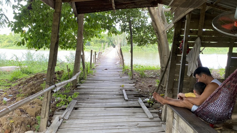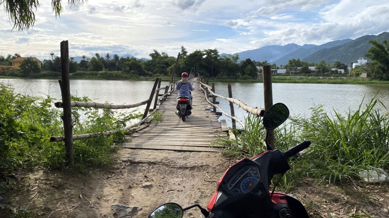 長さは約130mで木製です。かなり貧弱な感じがしますが、皆さんバイクで通過します。通行料金は片道4,000ドンです。通過する前はちょっと怖い感じがしますが、走って見ると案外丈夫にできているようです。