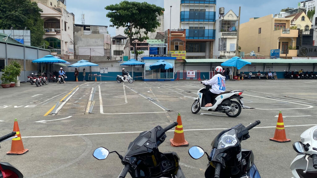 このマニュアル式バイクでの試験は旧ゴーパップ区のTRƯỜNG CAO ĐẲNG NGHỀ SỐ 21(住所:103 Dương Quảng Hàm, P7, Gò Vấp)で行われます。一方9月か10月に開始されるオートマバイクの試験は最近試験場として使われている空港近くのTrung tâm giáo dục nghề nghiệp Saigonbus(住所:66 Phổ Quang, P2, Tân Bình)で引き続き行われる予定です。