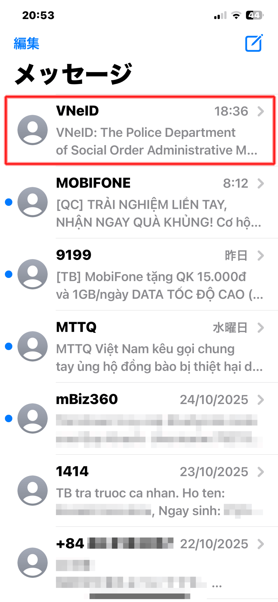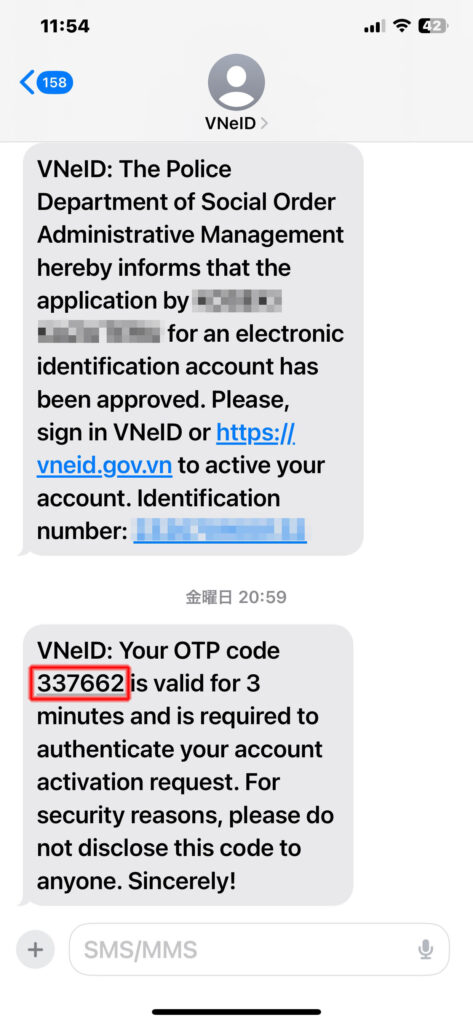 ダウンロードされるとVNeIDアプリが現れます。次はIDが送られてくるまで待ちます。