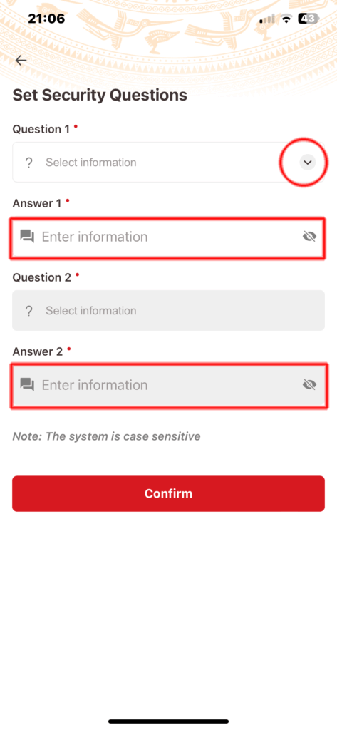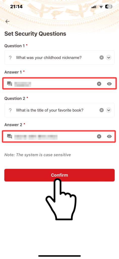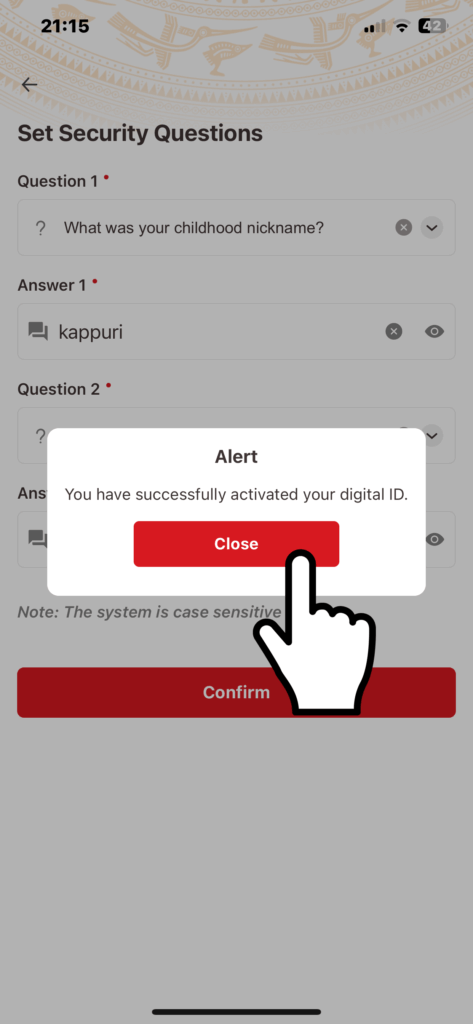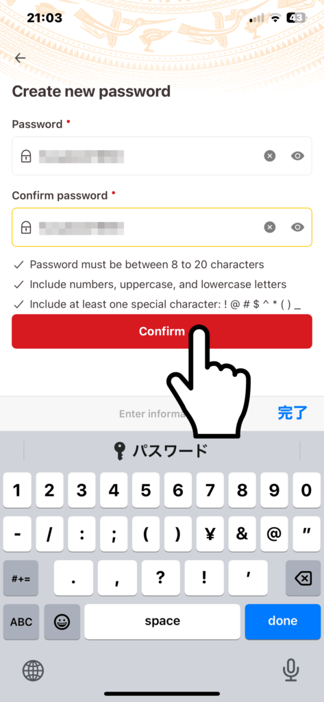 二つの秘密の合言葉が決まったら「Confirm」をタップします。これでアクティベートは完了です。