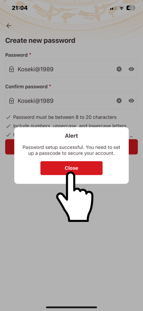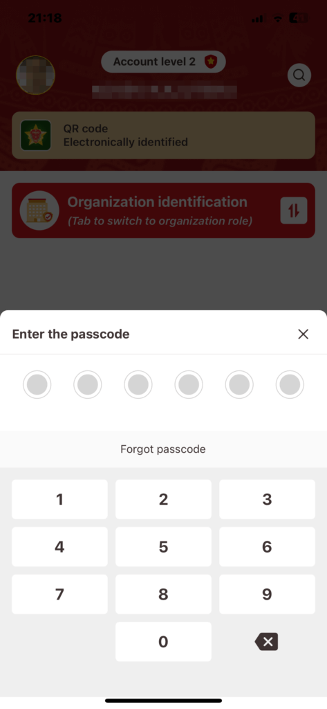 パスワードを設定すると次に希望のパスコードを入力します。パスコードは自分の誕生日など第3者に推測されやすい番号を避けます。